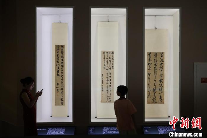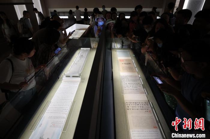 观众在南京博物院特展馆欣赏展出的书画精品。 中新网记者 泱波 摄