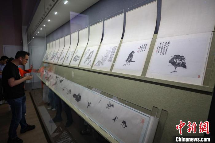清代吴昌硕的山水树石花鸟图。 中新网记者 泱波 摄