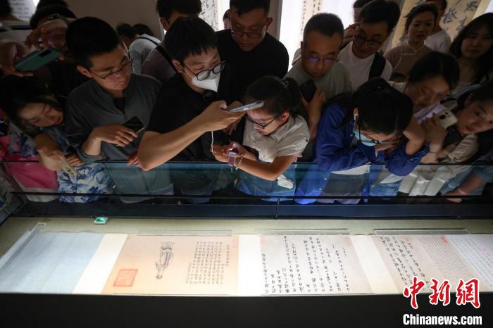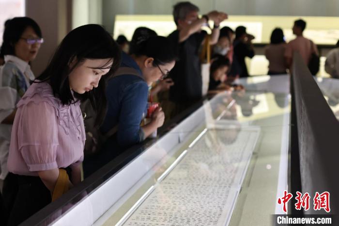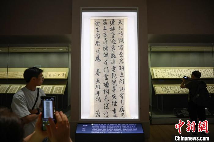 明代文徵明的《奉天殿早朝诗》吸引观众的目光。 中新网记者 泱波 摄
