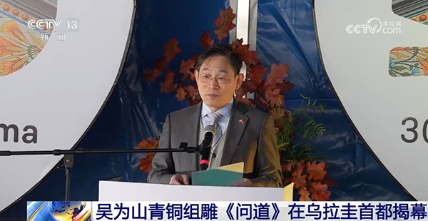 中国驻乌拉圭大使黄亚中代吴为山宣读了揭幕致辞,吴为山表示,《问道》这组雕塑作品表明只有将问道、传道相结合,才能产生世界范围内的广泛对话;只有通过对话才能沟通心灵,融通情感,增进了解,共求发展。