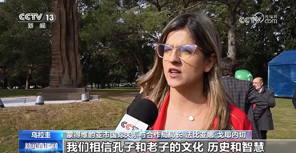 蒙得维的亚市国际关系与合作局局长 法比亚娜·戈耶内切:我们相信孔子和老子的文化、历史和智慧可以通过这组塑像的深刻表达进行传递,我们希望(这组雕塑代表的)文化可以融入到这座城市的生活之中。