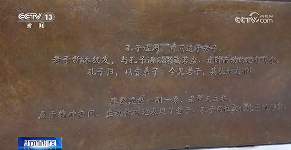 这组雕塑由青铜铸就而成,总高7.8米,重6.6吨。由孔子和老子两尊雕像组成,以写意的手法讲述了孔子入周向老子问礼的故事。