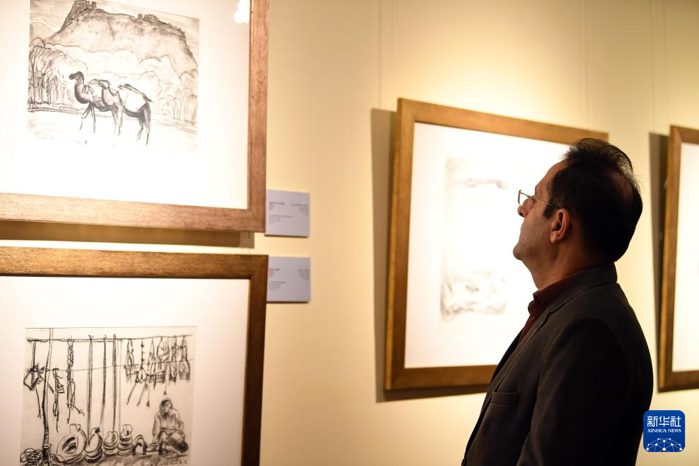 10月12日,一名男子在伊朗首都德黑兰的马利克国家博物馆参观“丝路长云——中国艺术文化精品展”。