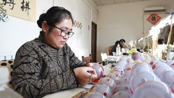 近日,在河北省衡水深州市的一家工艺品厂,工人们正在为明年的内画圣诞灯饰出口订单忙碌着。衡水内画是国家级非物质文化遗产,这种工艺使用特殊的画笔在器物的内壁上绘出万千气象。