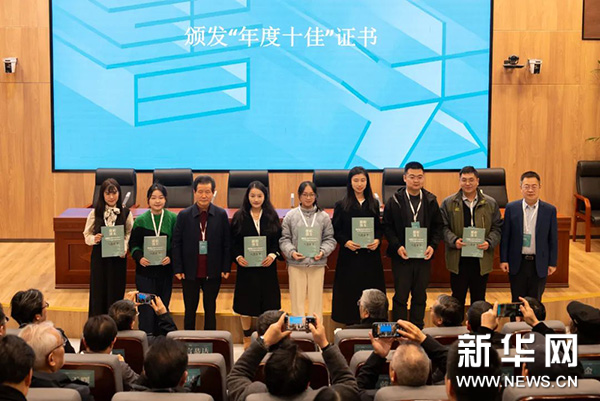 俞锋书记与言恭达会长为“年度十佳”论文入选作者颁发证书