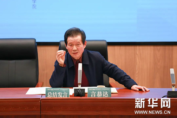 (全国)教育书画协会名誉会长兼高等书法教育分会会长言恭达对论坛活动作总结性发言