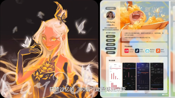 动漫与国风完美衔接,形成流畅的视频变装,文物在她的笔下穿过现实和虚拟的边界,重新绽放,闪亮又鲜活。