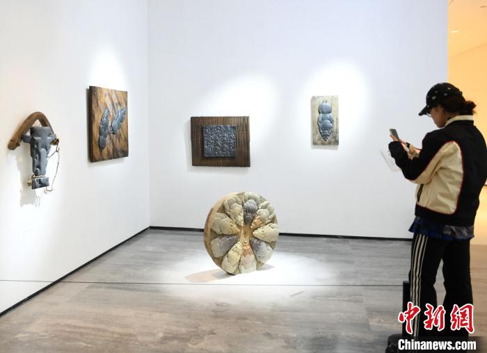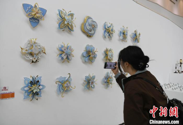 图为精美艺术作品吸引参观者驻足拍照留念。中新社记者 周毅 摄