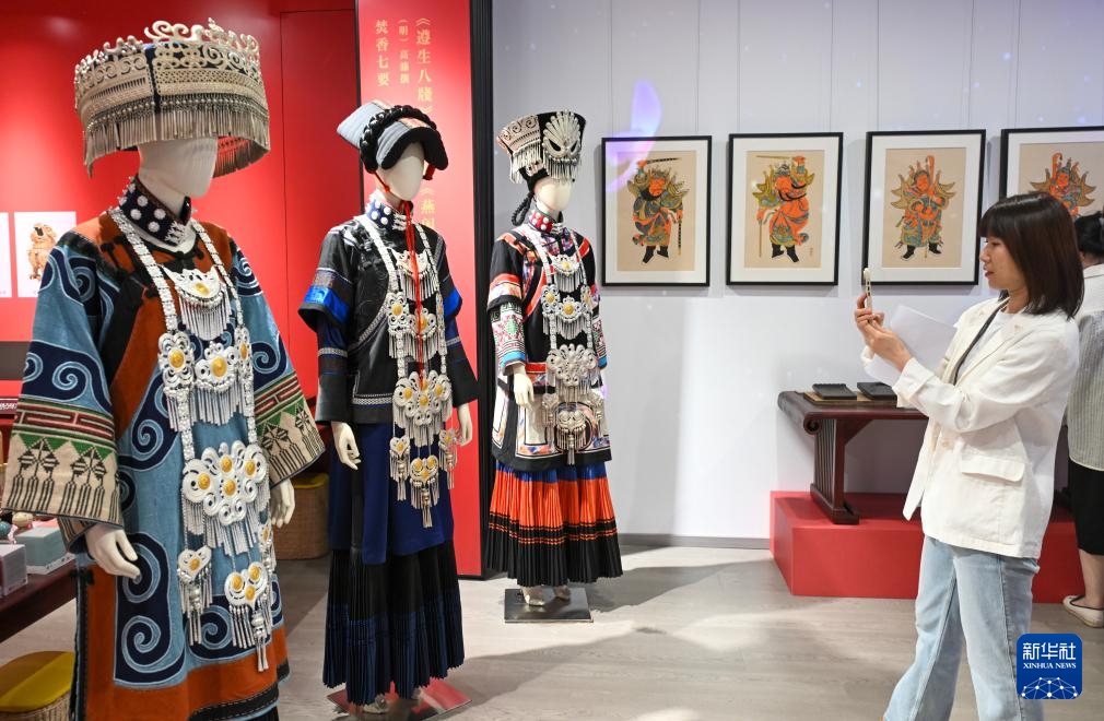 5月17日,嘉宾参观展出的彝族服饰。