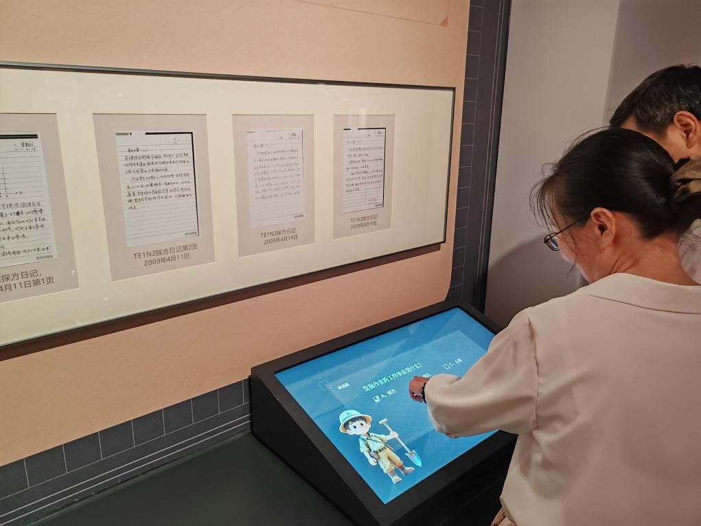 18日下午,观众在玉架山考古博物馆互动屏上回答问题,学习考古知识。新华社记者 冯源 摄