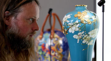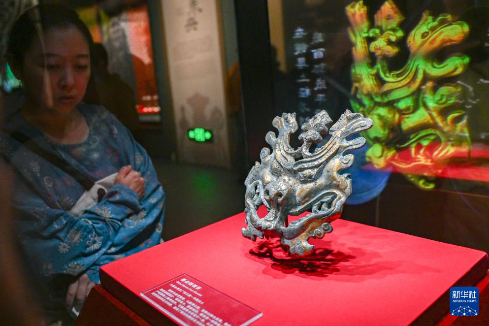 5月20日,观众在观看出土于一号墓的文物鎏金铜铺首。