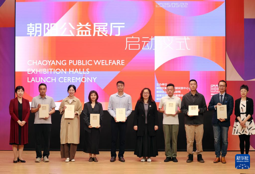5月22日,中央美术学院美术馆、炎黄艺术馆等“朝阳公益展厅”项目首批合作单位代表在启动仪式上合影。