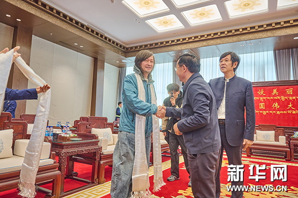 西藏自治区党委宣传部副部长、文化和旅游厅党组书记肖传江向艺术家们敬献哈达