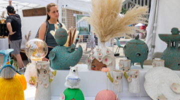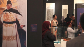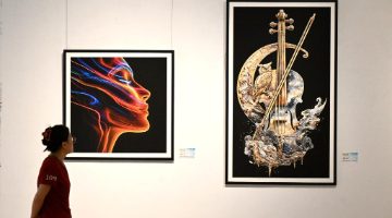7月16日,参观者在汉魏洛阳故城遗址博物馆观看展品陶百花灯。