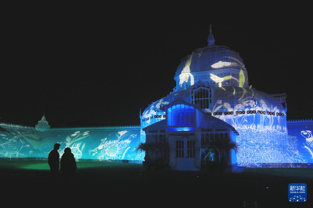 美国旧金山:金门公园举行温室灯光秀-新华网