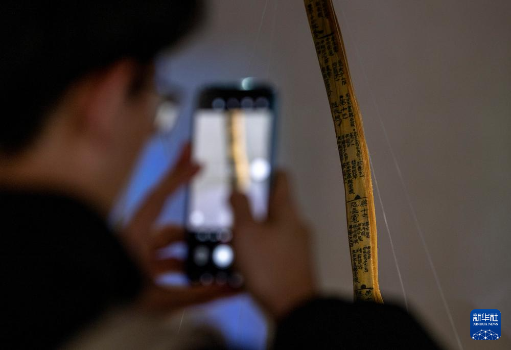 12月28日,参观者拍摄展出的居延汉简。