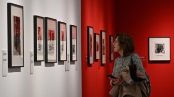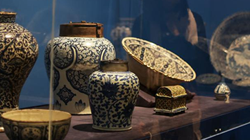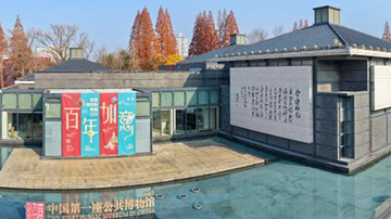 12月29日,媒体记者在辽宁省博物馆拍摄工作人员布展。
