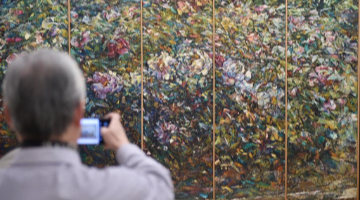 12月29日,媒体记者在辽宁省博物馆拍摄宋摹张萱《虢国夫人游春图》。