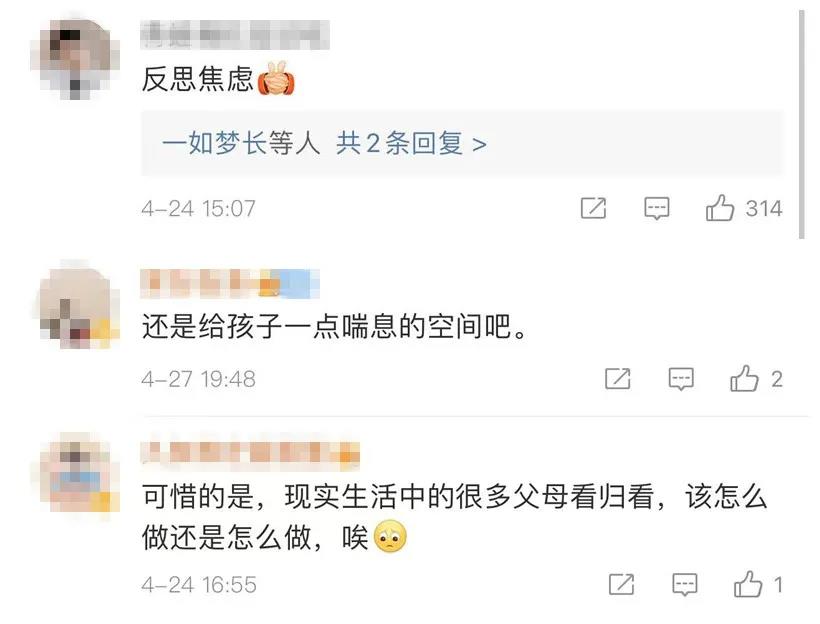 部分观众认为这部作品部分还原了当下教育的面貌,“我们生活中都有类似的父母啊”“不得不承认这就是现在大部分家庭的现状”“现实比电视剧演的还要残酷”等评论频现。