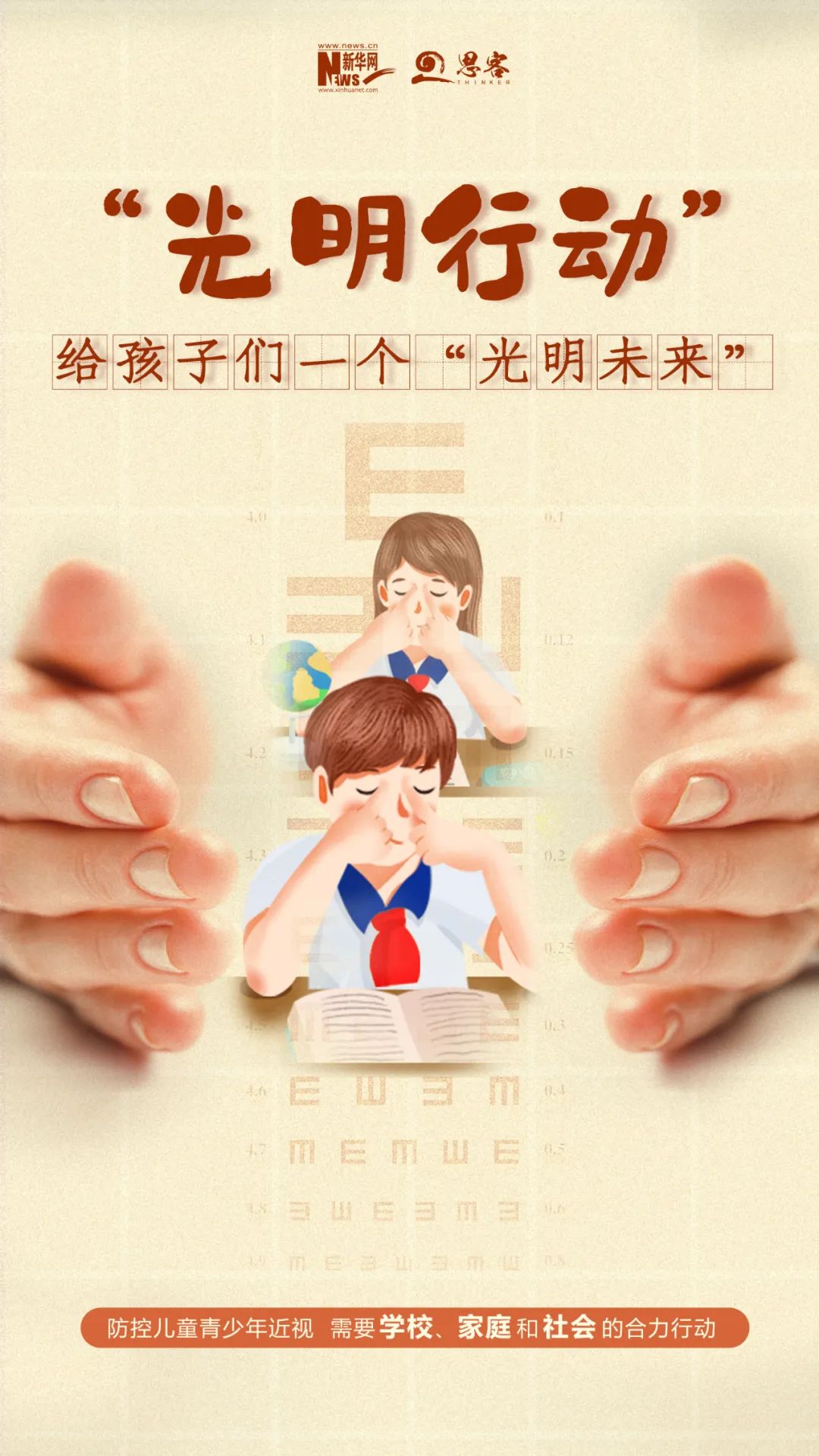 近日教育部等十五部门联合制定《儿童青少年近视防控光明行动工作方案(2021—2025年)》,共同实施八个专项行动防控儿童青少年近视。具体包括:引导学生自觉爱眼护眼、减轻学生学业负担、强化户外活动和体育锻炼、科学规范使用电子产品、落实视力健康监测、改善学生视觉环境、提升专业指导和矫正质量、加强视力健康教育。