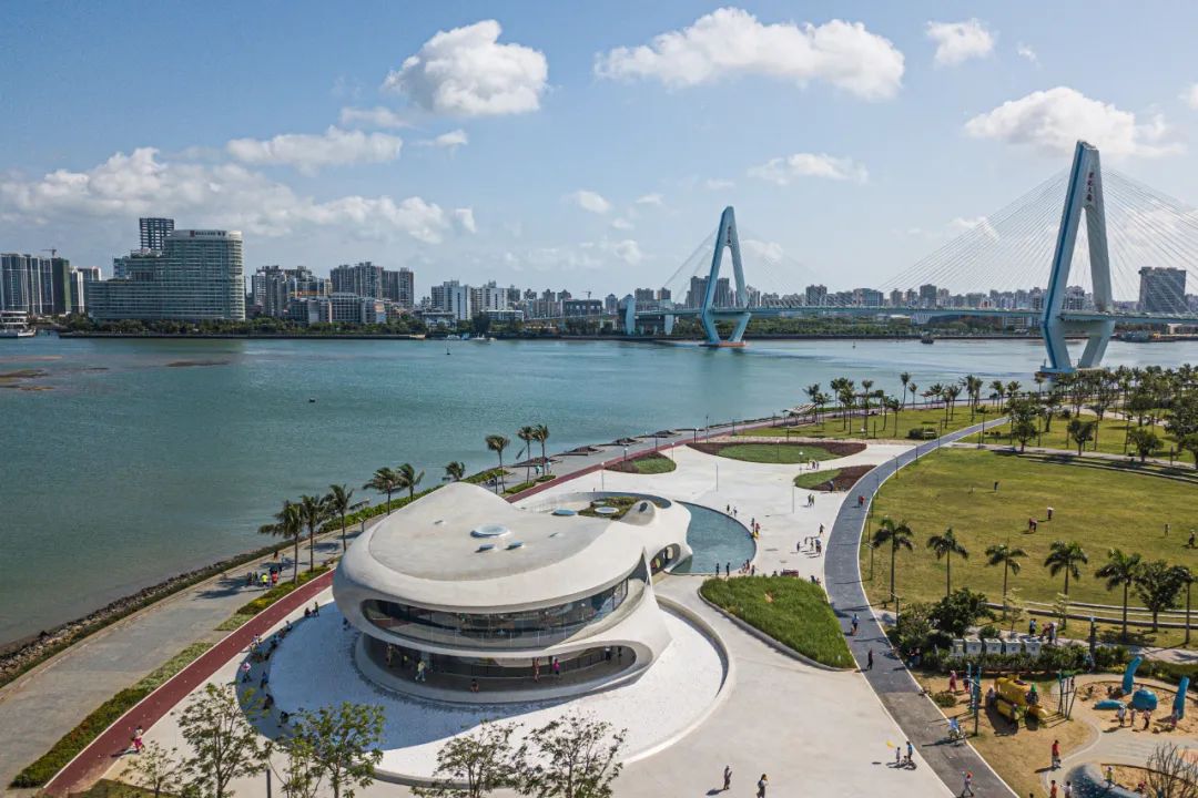 ▲“十四五”开局之年,也是海南全面深化改革开放和加快建设自由贸易港关键之年。这是5月3日在海口拍摄的云洞图书馆,远处是海口地标世纪大桥(无人机照片)。新华社记者 蒲晓旭 摄