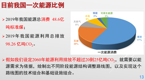 目前有很多国家对氢能寄予了很大希望,我们的院士当中也有不同的声音。氢能战略也需要国家拿出方案。我国大约100亿吨二氧化碳排放中,发电端占比约47%,消费端如工业过程、居民生活等等占了53%,要实现碳中和就需要在发电端用更多的非碳能源来发电、在消费端用电和氢能等来替代,构建一个两端共同发力的系统。