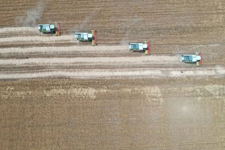 ▲2020年5月26日 河南邓州:农机服务组织挑起农业现代化的“金扁担”。新华社记者 冯大鹏 摄