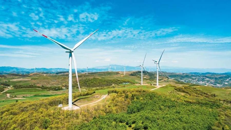▲2020年4月27日拍摄的贵州威宁彝族回族苗族自治县雪山镇风力发电设备