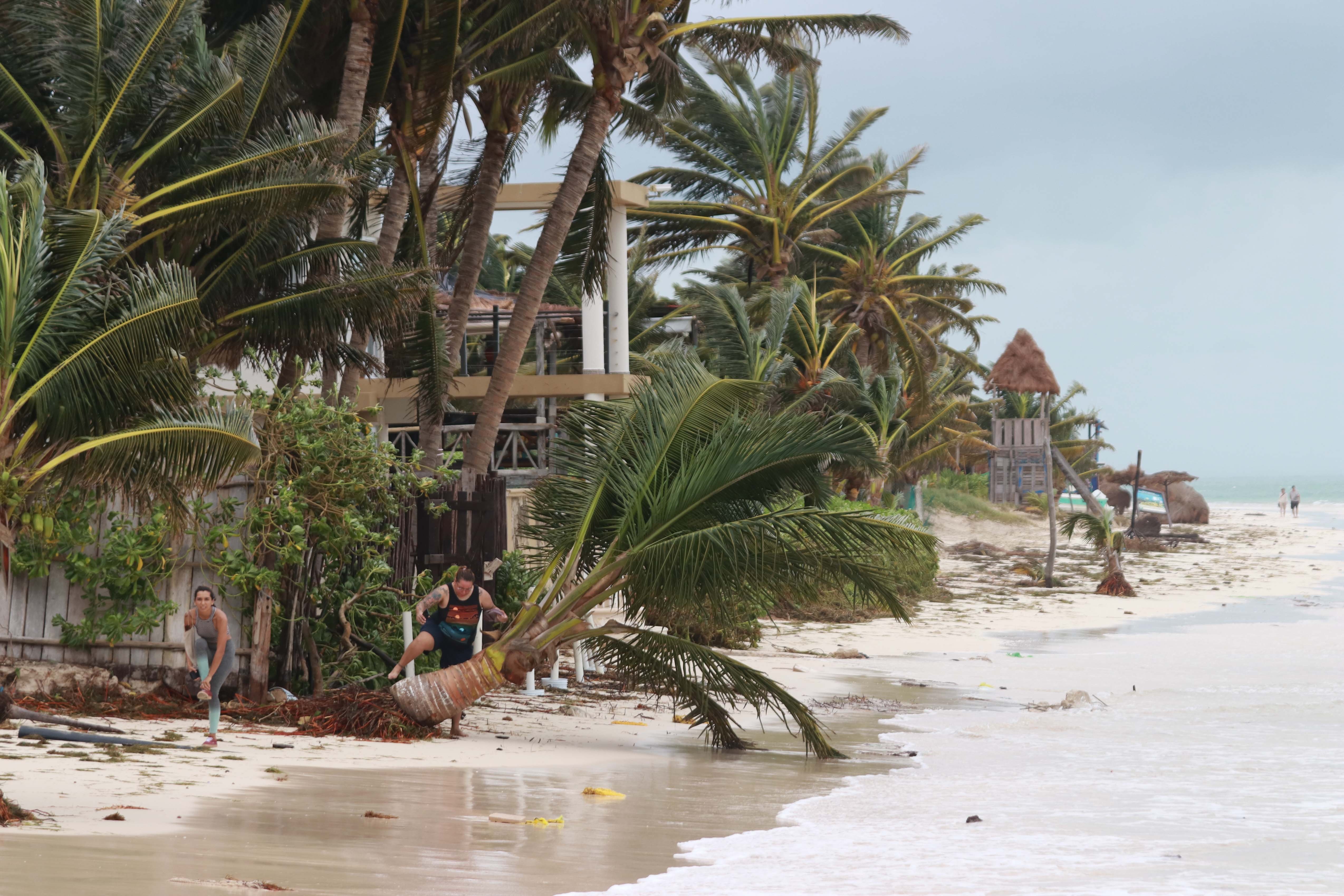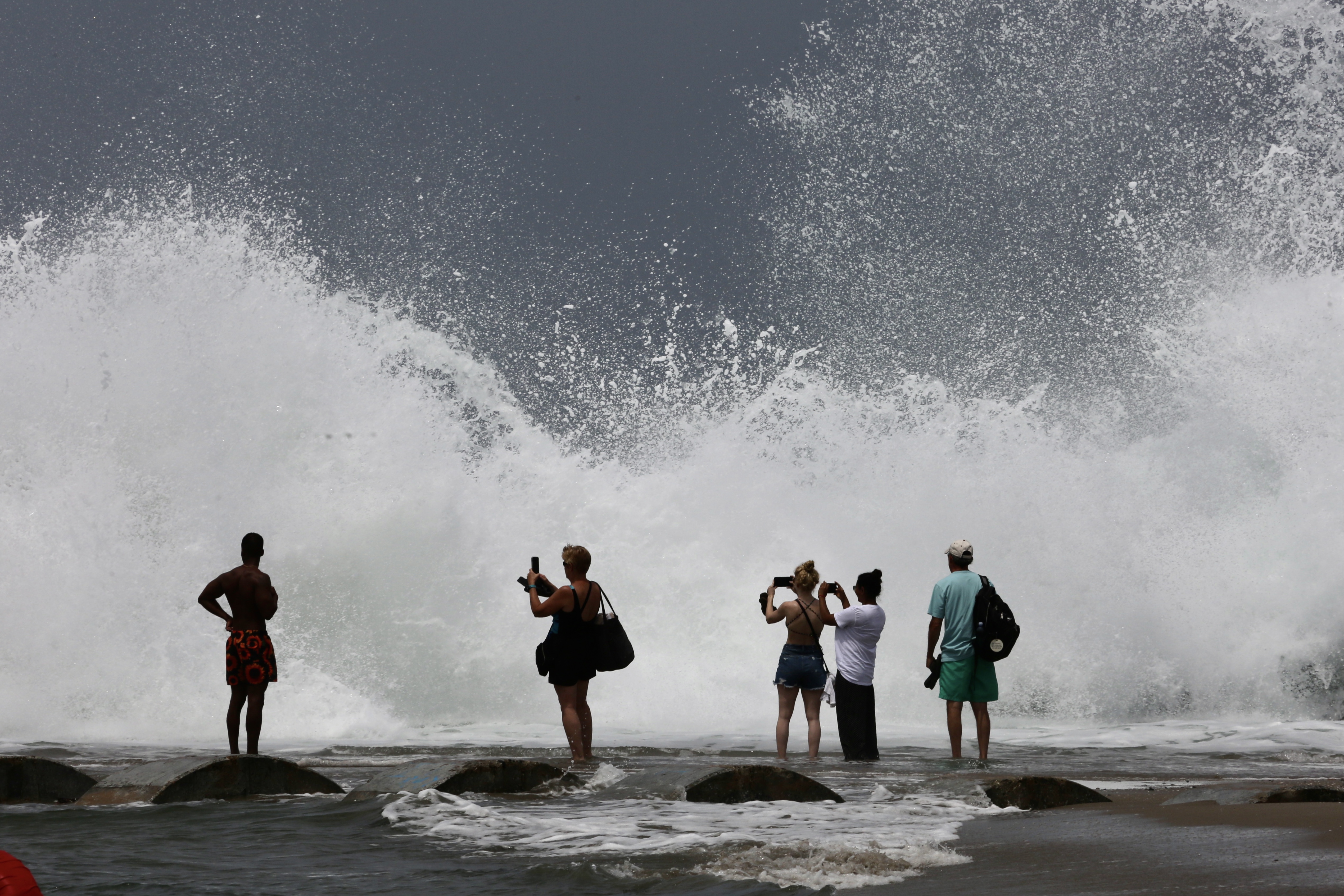 ▲2020年10月7日,在墨西哥金塔纳罗奥州莫雷洛斯港,人们在飓风过后来到海边。新华社发(罗萨斯摄)