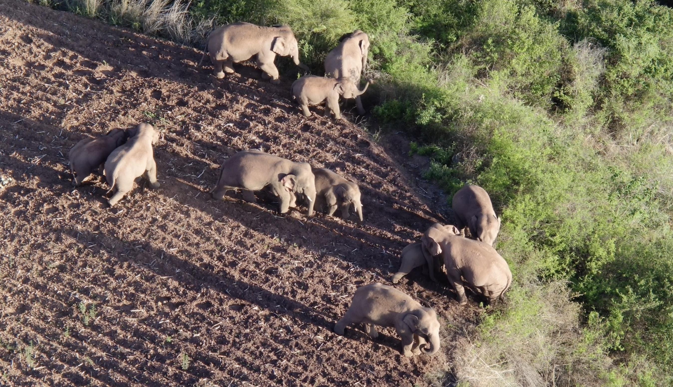▲6月17日,象群在玉溪市易门县十街乡。(云南省森林消防总队)