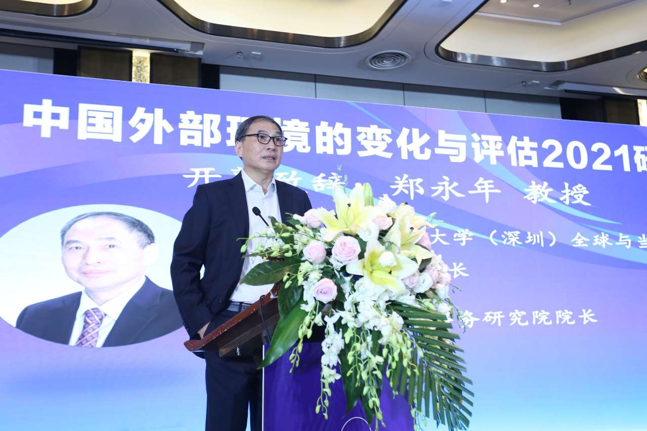 香港中文大学(深圳)全球与当代中国高等研究院院长、前海国际事务研究院院长郑永年教授致开幕辞。郑永年表示,近年来,国际政治风云变幻,西方主导的国际自由经济秩序面临各种挑战,全球化的方向开始发生变化;而西方各国内部经济上的结构性问题又引发了国家治理危机,使得民粹主义正在冲击西方传统的政治秩序;同时新冠疫情的持续给世界造成巨大的困境,使变局加速演变。对中国来说,我们面临一场百年未有之大变局,如何了解并看清世界的变化,对中国的外部环境做一个全面而系统的评估,就成为迫在眉睫的事情。