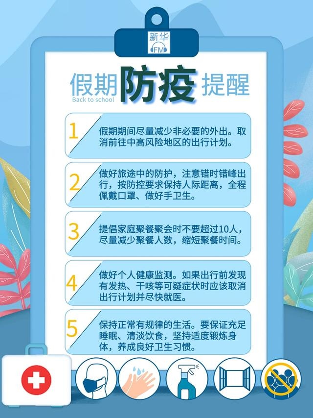 对于个人而言,一定要增强自身防护意识,不扎堆、不聚集,主动配合防疫工作。国庆“黄金周”为时不远,假期出游、亲友聚会、去往娱乐场所的次数增多,一定要落实戴口罩、手卫生等防护措施,减少人员聚集。疫情面前,容不得一丝侥幸心理。