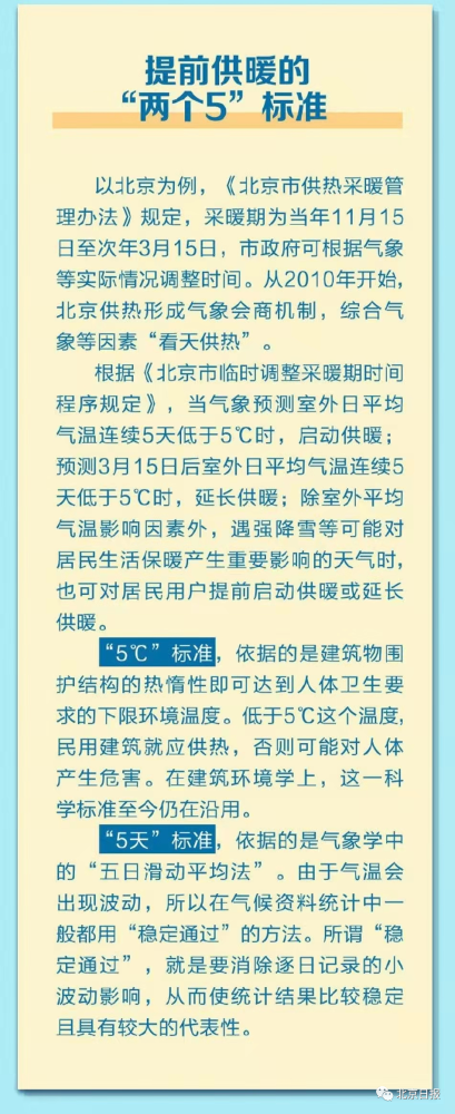 其实为了保证大家能够有一个温暖的家,北方许多城市已经提前供暖,甚至像内蒙古的额尔古纳市和根河市早在9月1日就开始供暖了。其他地区能不能提前供暖,需要满足“两个5”标准。