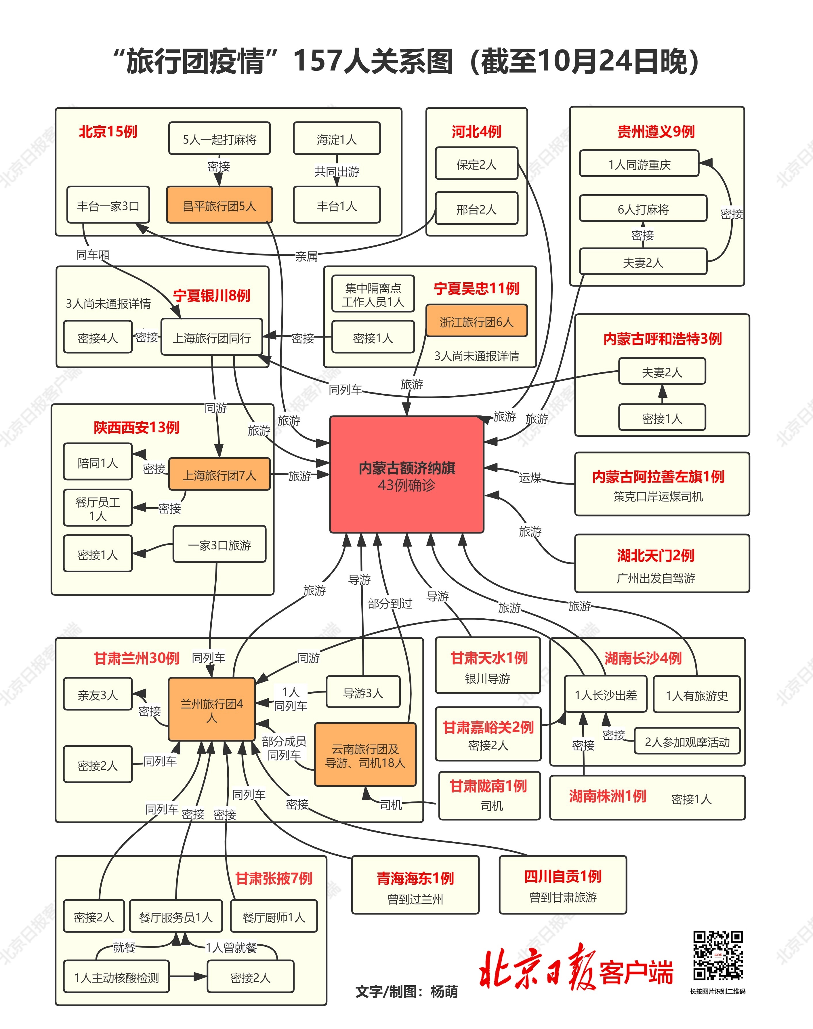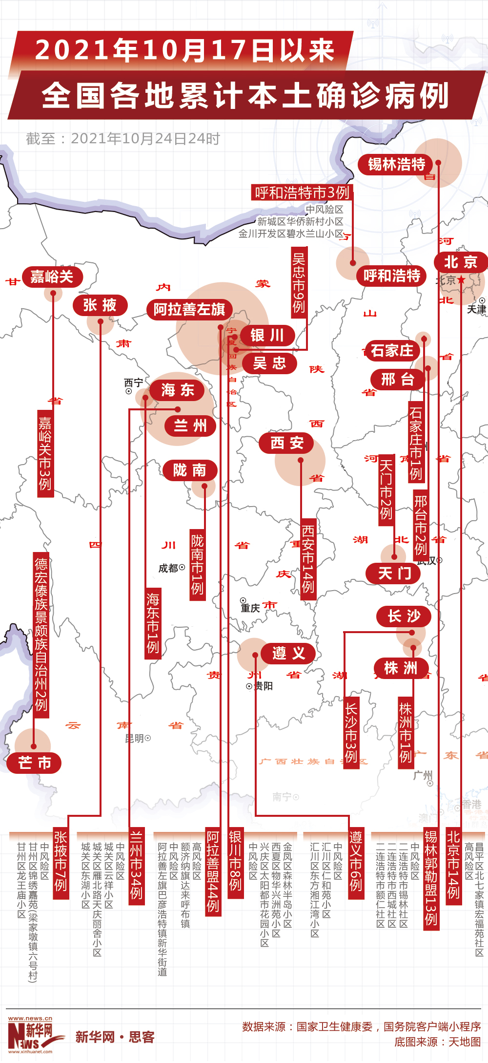 自10月17日多地关联聚集性疫情发生以来,截至10月24日24时,累计报告168例感染者。本轮疫情已经波及陕西、宁夏、内蒙古、北京等11省区市。