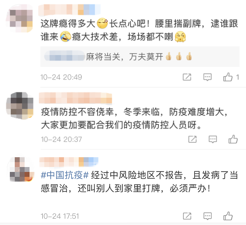 北京市昌平区宏福苑小区两名确诊病例,自内蒙古自治区额济纳旗旅游返京后出现咽痛、发热等症状仍然外出就餐、邀请多人到居所打麻将。目前,一同打麻将人员中有5人确诊,公安机关已经对上述两人刑事立案侦查。