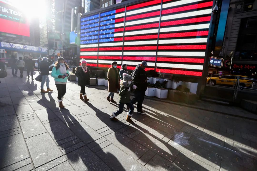 ▲11月23日,行人走在美国纽约时报广场。新华社记者 王迎 摄