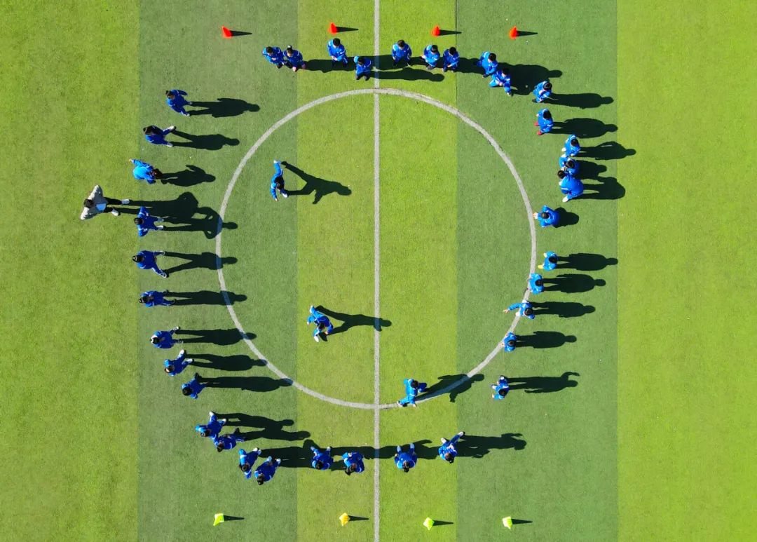 ▲学生在操场上进行体育课程展示(无人机照片)。新华社记者 魏培全 摄