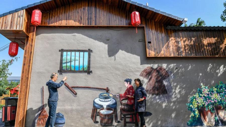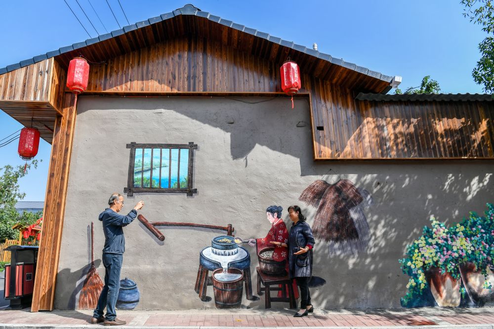 游客在太原市小店区刘家堡乡刘家堡村拍照游玩。新华社记者 曹阳 摄