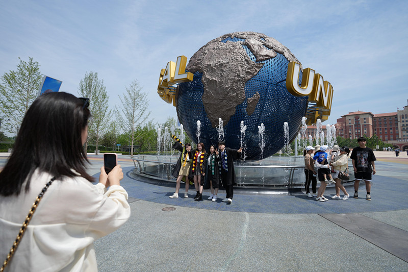 6月25日,游客在北京环球城市大道参观游玩。新华社记者 鞠焕宗 摄