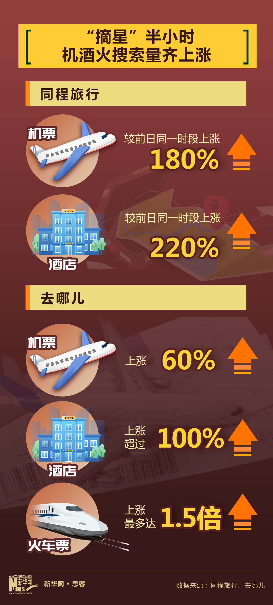 去哪儿平台数据显示,自消息发布半小时后,平台机票搜索量在30分钟内上升60%,酒店搜索量翻番,火车票搜索量上涨最多达到1.5倍。