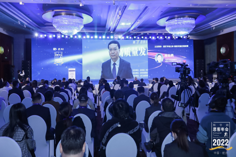 图为高培勇出席“2022新华网思客年会”并发表演讲。 新华网发