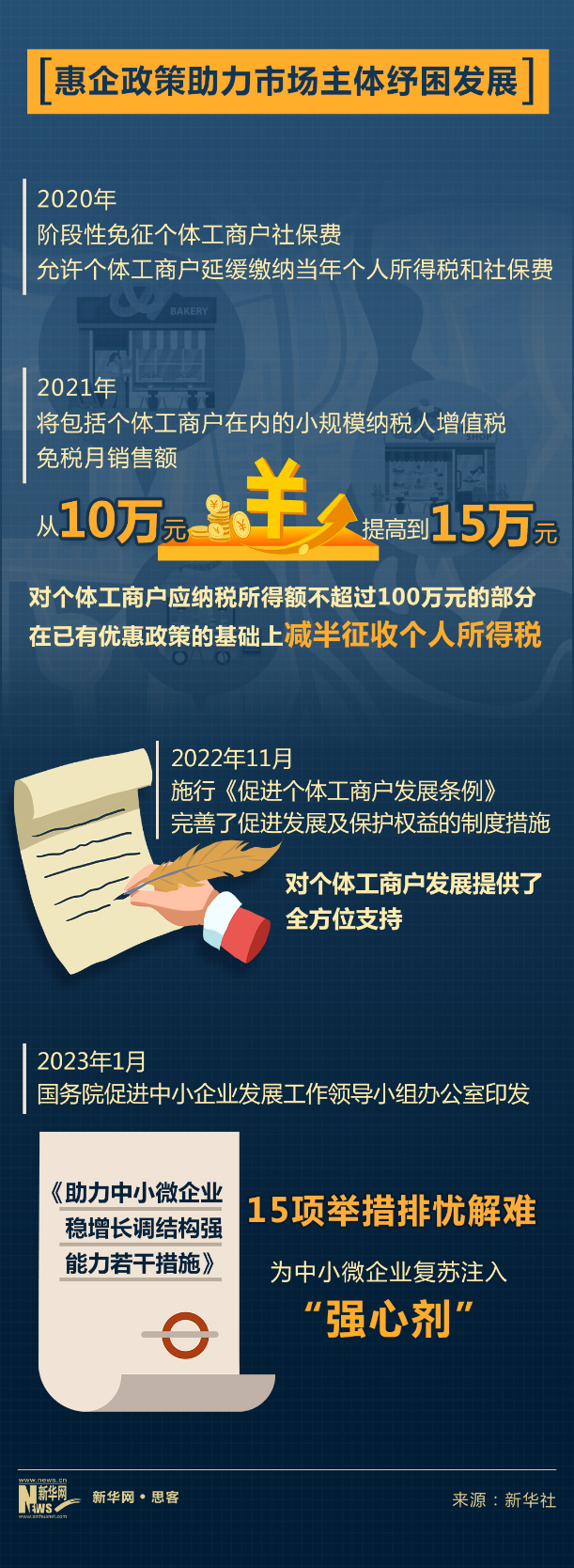 焕发个体经济生机活力,离不开税收“输血给氧”。近年来,各地区、各部门也出台了一系列帮扶个体工商户等小微市场主体发展的政策措施,精准扶困。