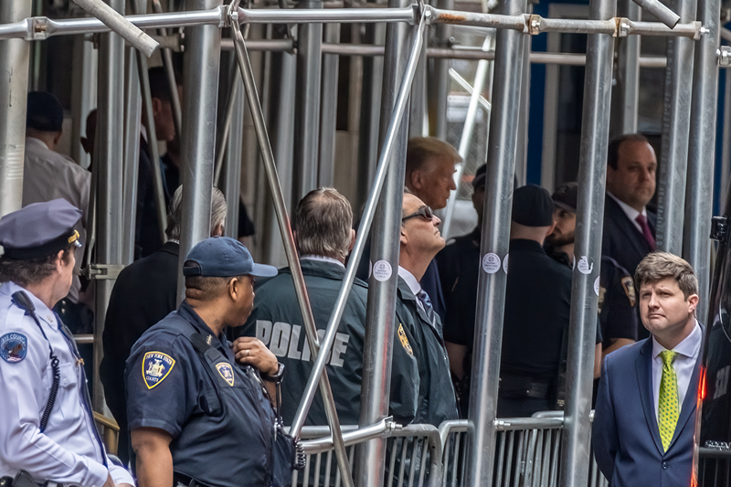 4月4日,美国前总统特朗普在纽约出庭后离开。新华社发(周焕新 摄)