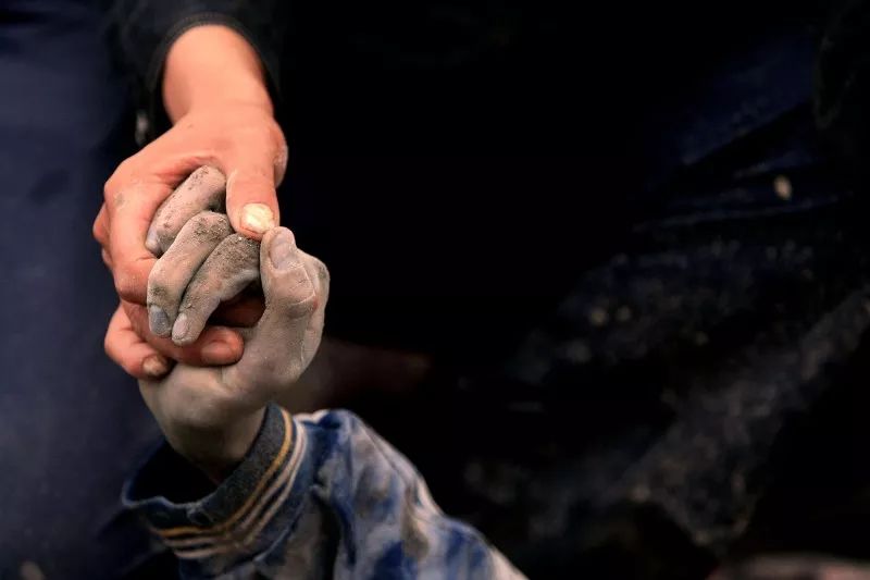 ▲2008年5月13日,都江堰市聚源中学,一名家长瘫软地跪在地上,紧紧地握住遇难孩子沾满泥沙的手,仿佛要从死神手中拽回儿子的生命。图片来源:央视新闻