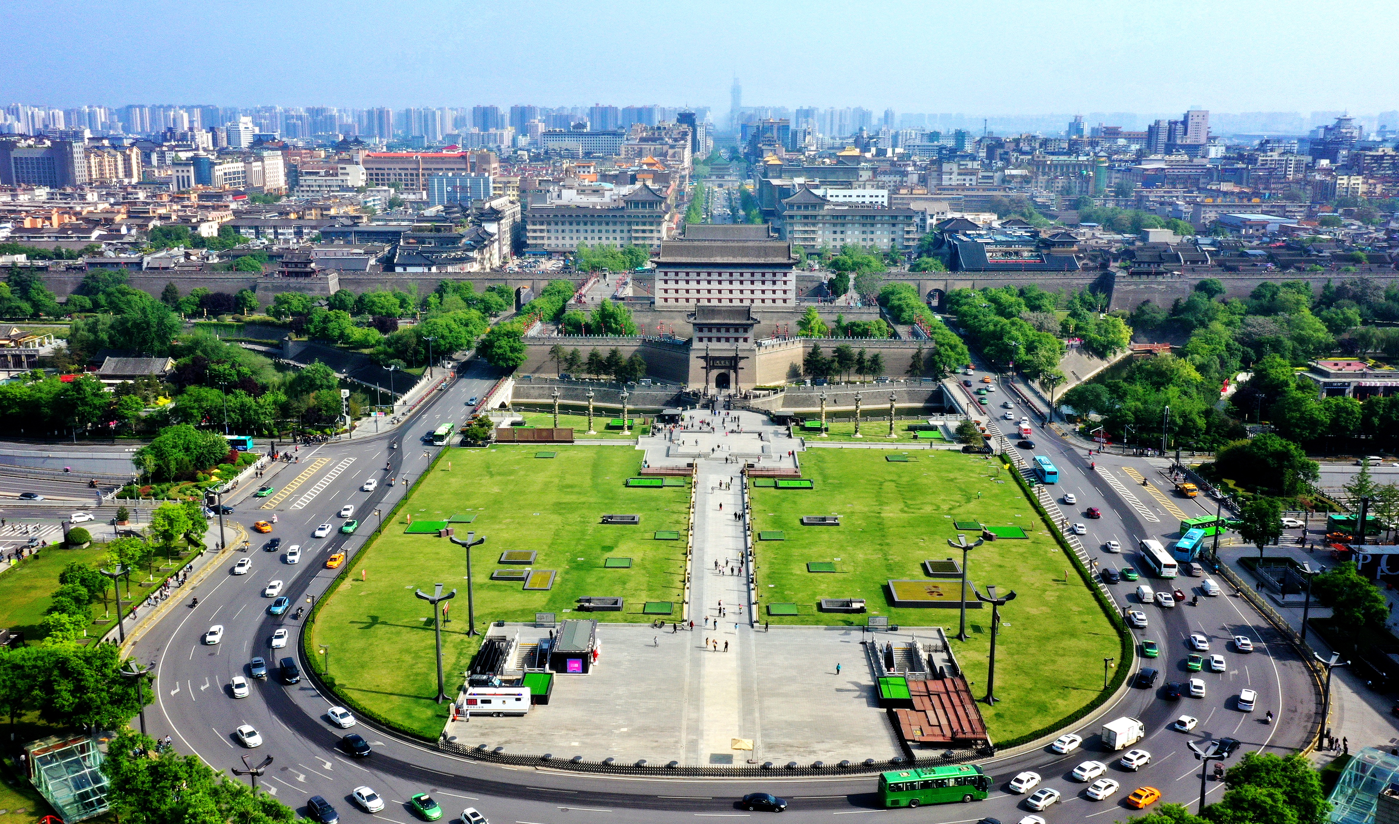 西安城墙景区永宁门文化广场(4月25日摄,无人机照片)。新华社记者 刘潇 摄