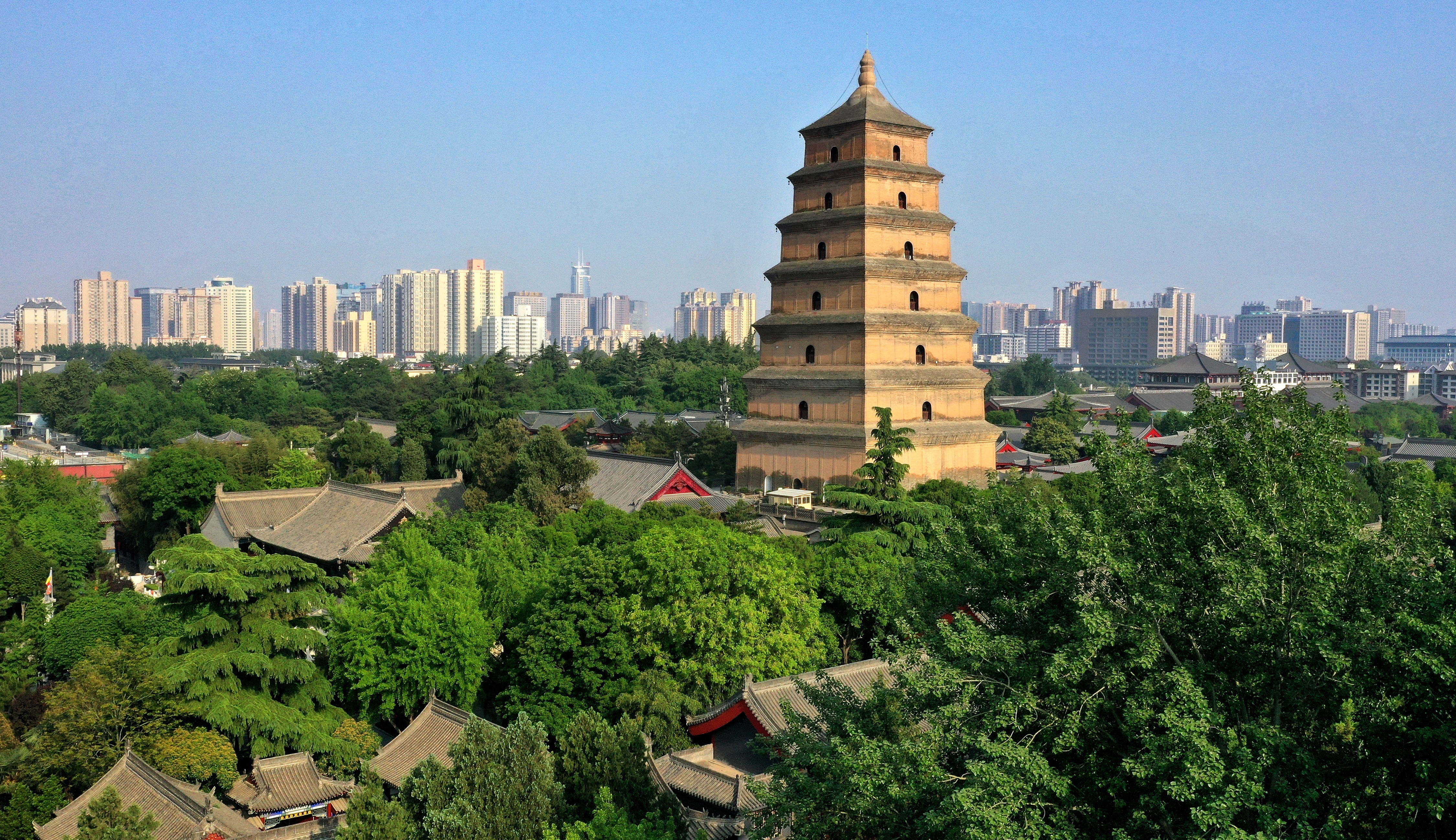 西安大雁塔(4月19日摄,无人机照片)。新华社记者 刘潇 摄