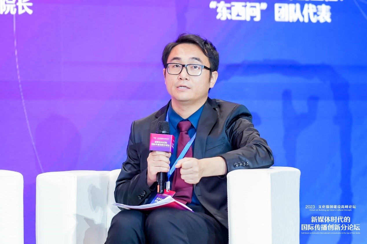图为中新社评论理论部副主任、“东西问”团队代表文龙杰分享观点