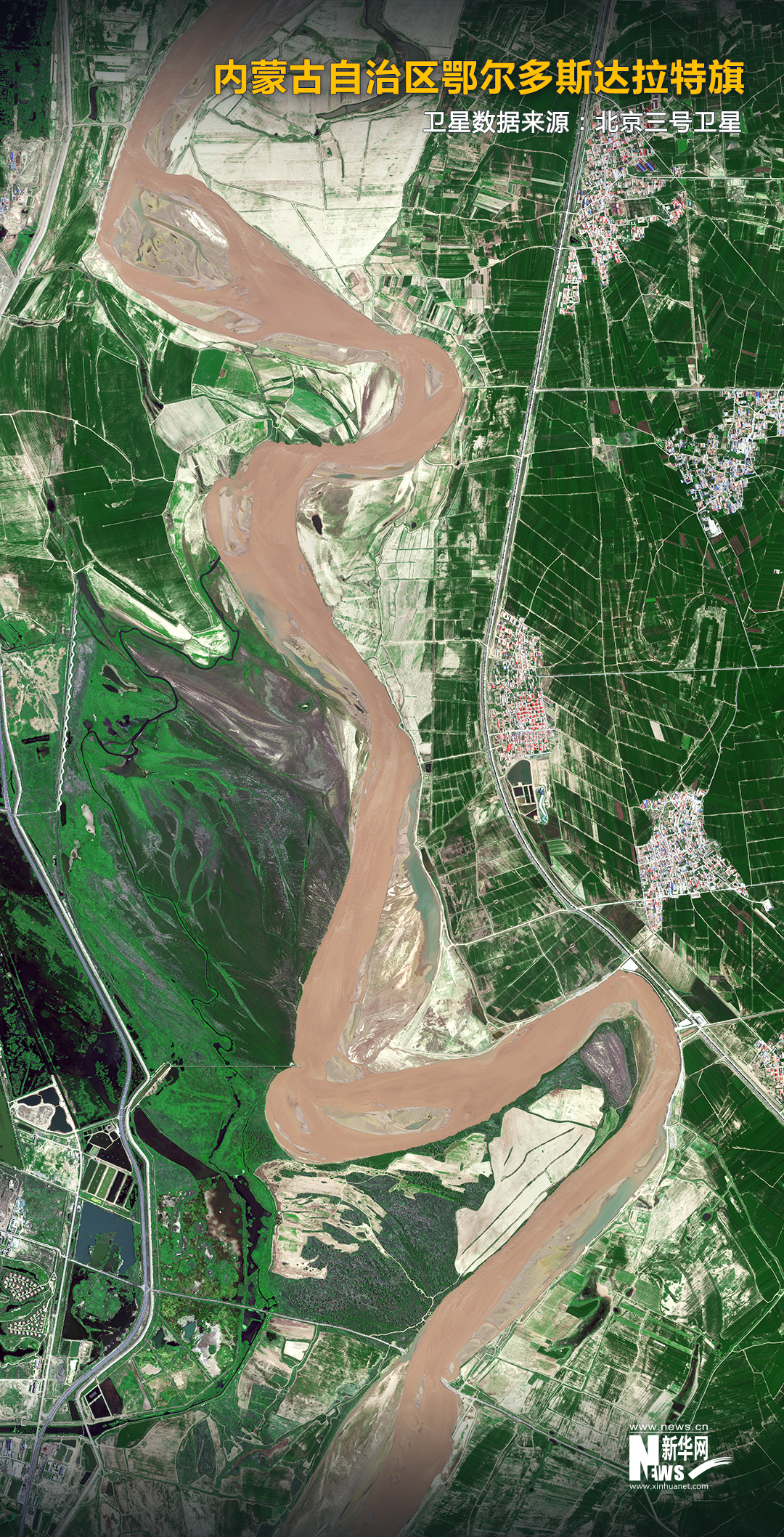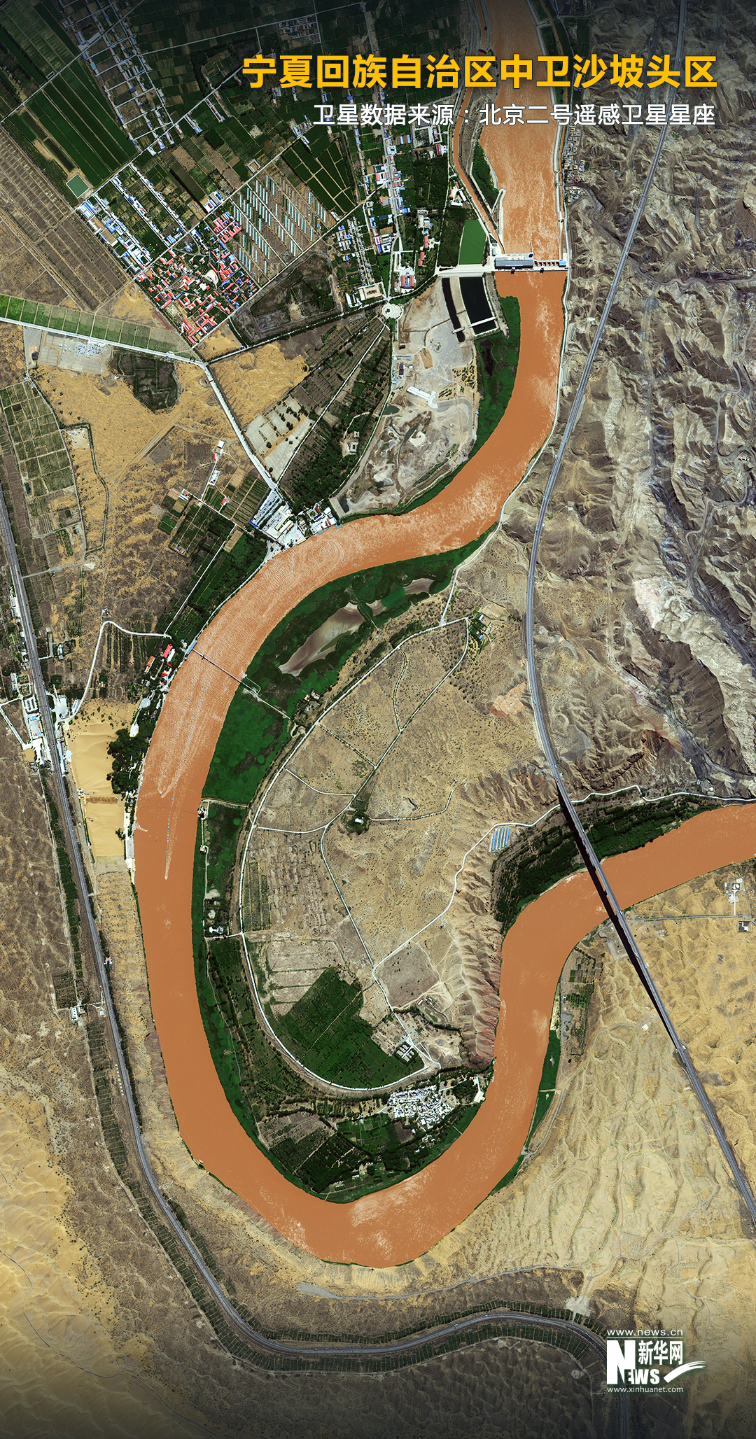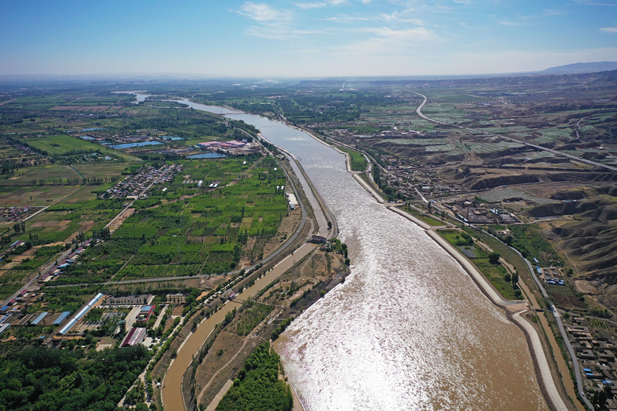 黄河流经宁夏中卫市沙坡头(无人机照片,2021年6月3日摄)。新华社记者 王鹏 摄