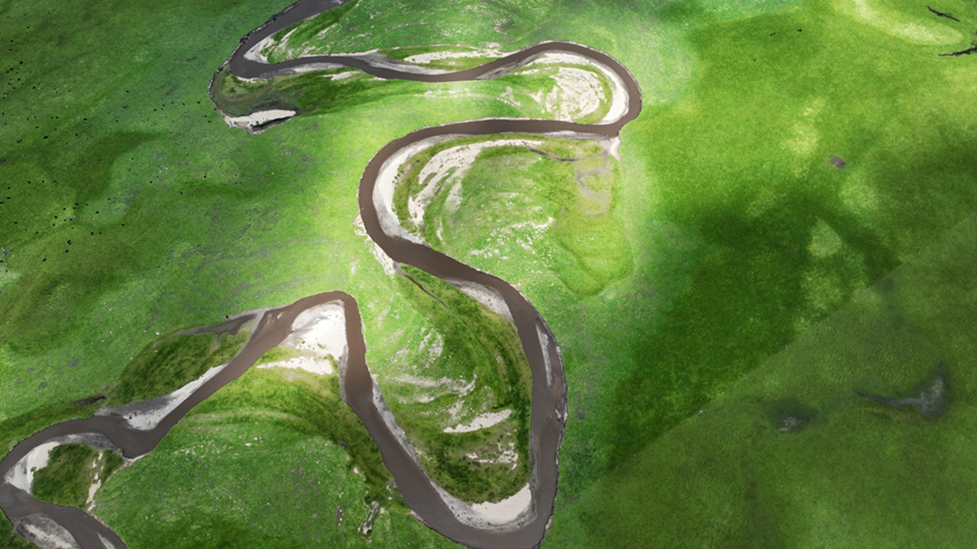 这是玛曲县阿万仓湿地景色(7月6日摄,无人机照片)。新华社记者 陈斌 摄