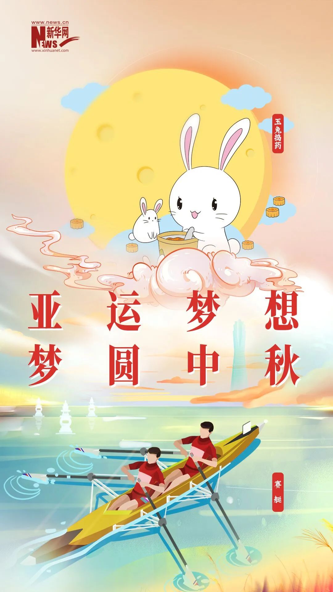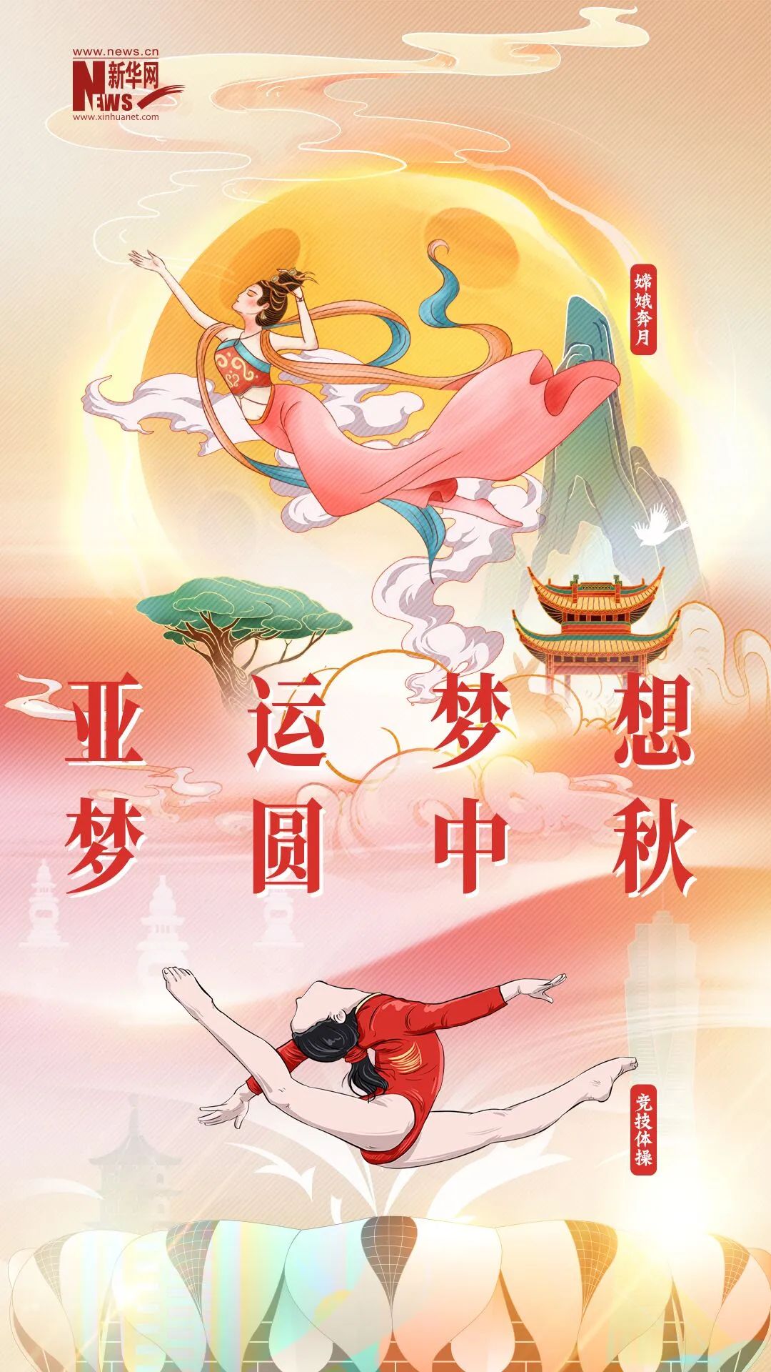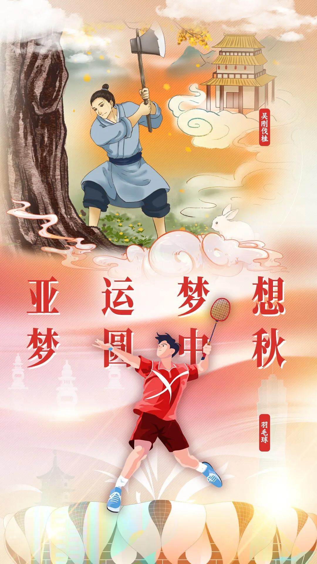今天是中秋佳节,在这个“共婵娟”的日子里,杭州亚运会也在如火如荼地进行。关于中秋节,有不少美丽的传说,“嫦娥奔月”“吴刚伐桂”“玉兔捣药”......月圆时分,燃情时刻,中国传统神话故事会与杭州亚运会碰出怎样的火花?几张海报带你感受这个中秋,梦想因亚运而绽放!